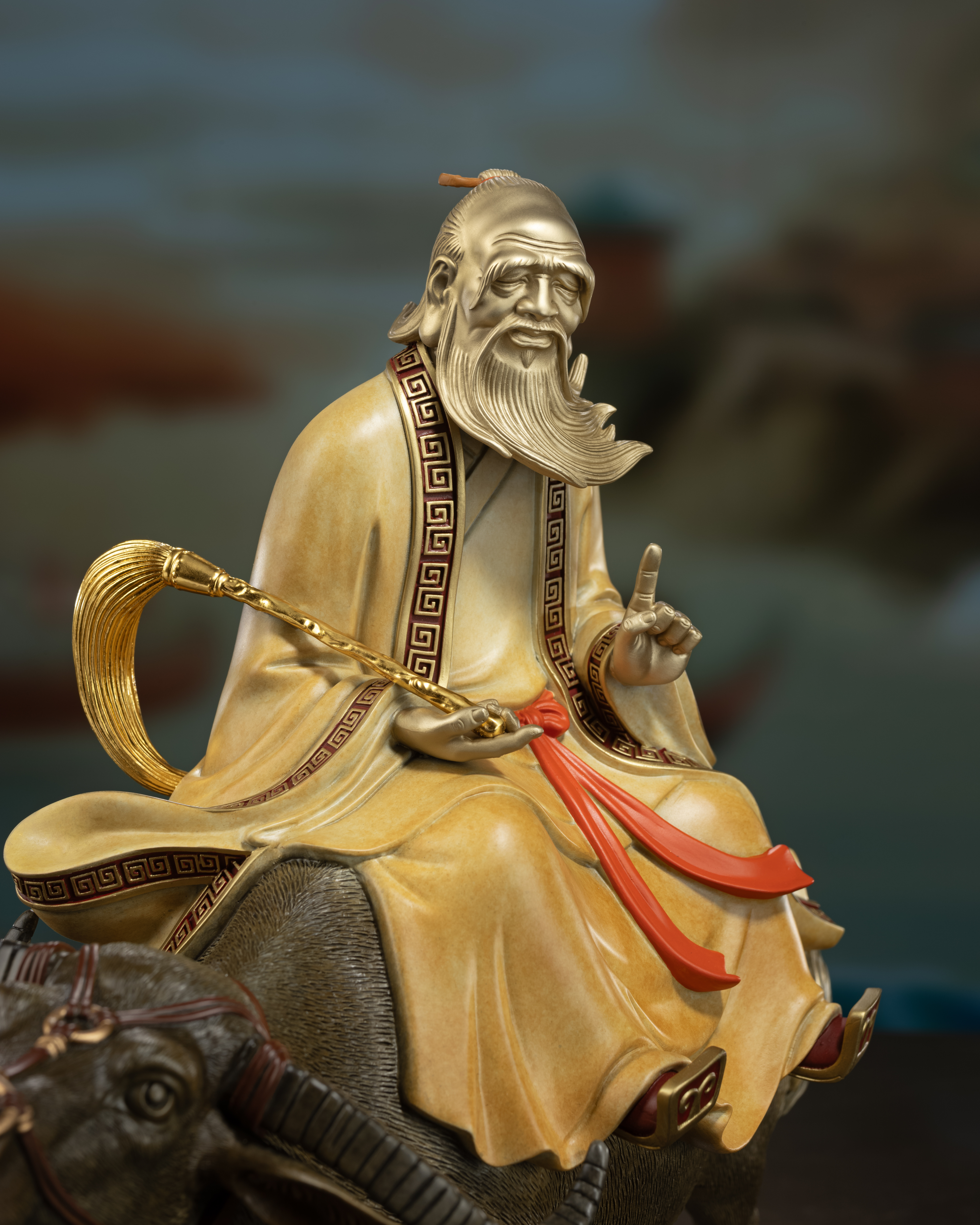• 表面處理:高溫著色+彩色顏料手繪+24K真金金箔(拂塵)