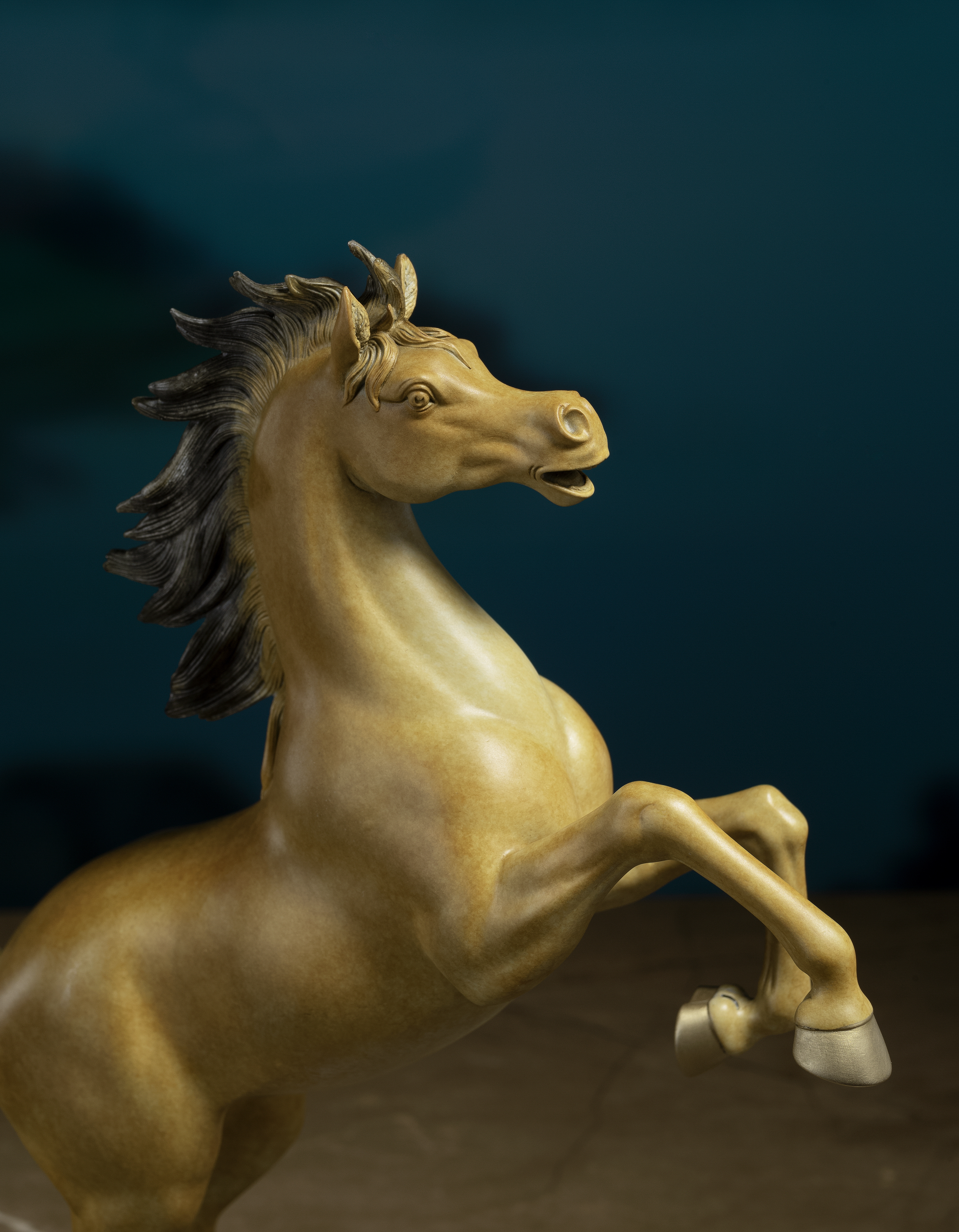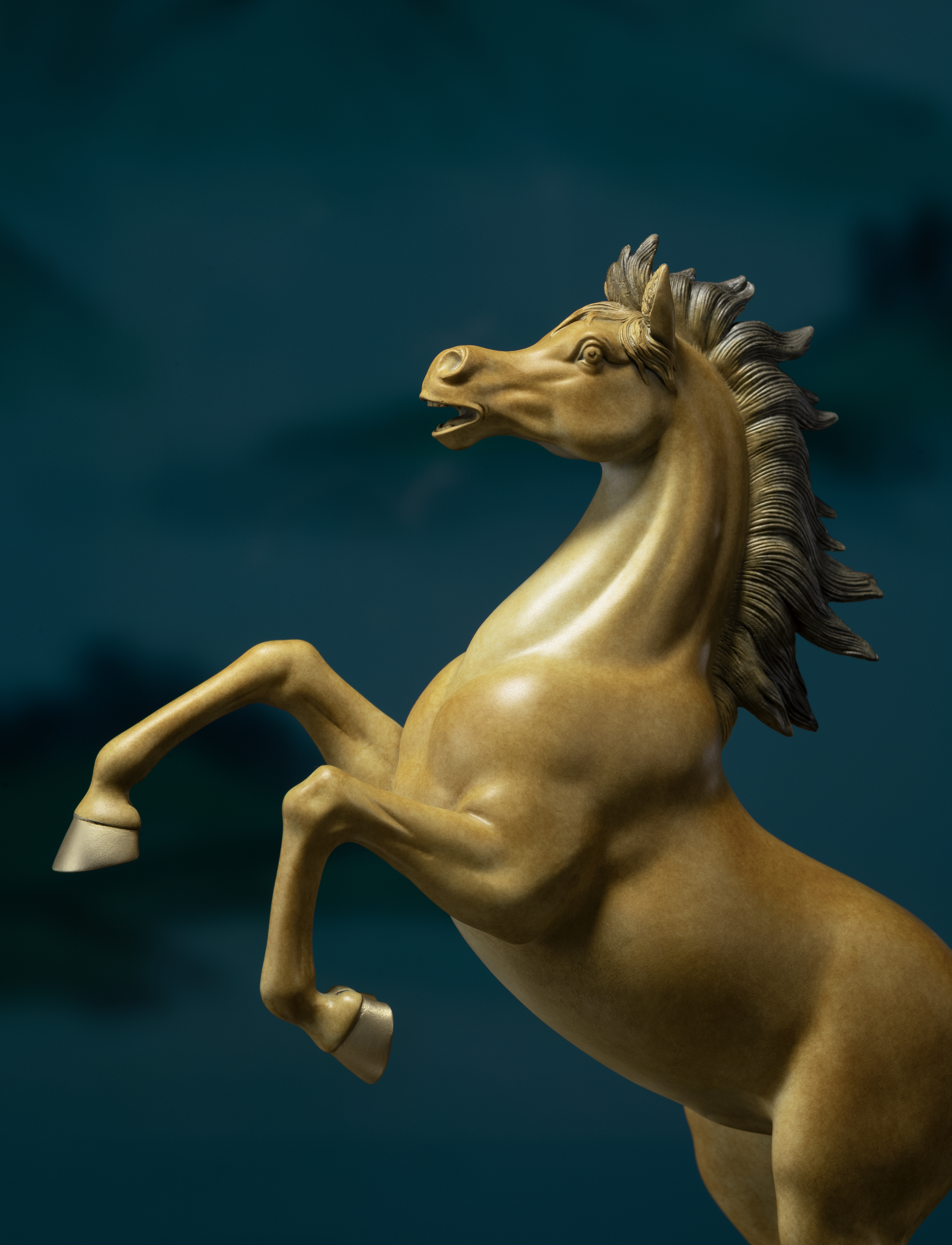 根據動物解剖學,嚴謹推敲每一節骨骼、每一塊肌肉,力求精準表現造型和動態,是銅師傅作品的特色之一