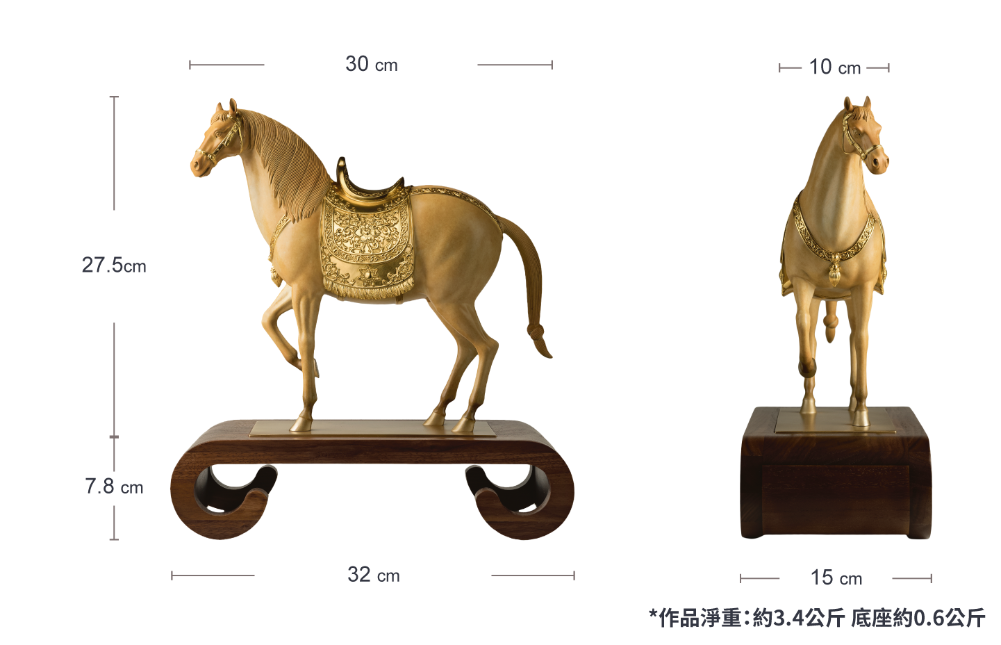 • 作品淨重:約3.4公斤、底座約0.6公斤