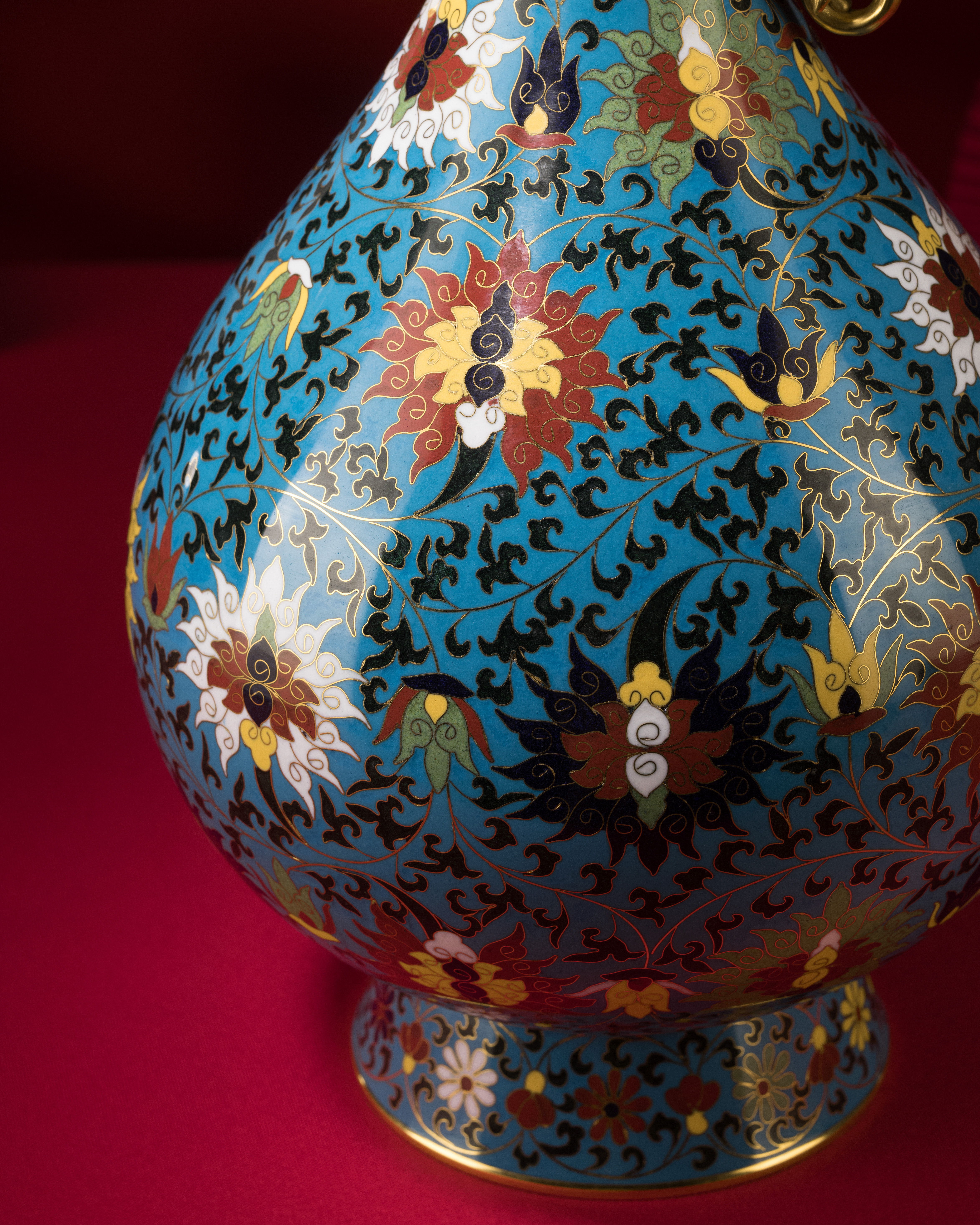 景泰藍,中國著名特種工藝品之一,宮廷藝術與極致手工的典範,又名“銅胎掐絲琺瑯”,是一種在紫銅胎體上,用柔軟的扁銅絲,掐成各種紋飾焊上,再把琺瑯色釉填充在花紋內燒製而成的精美器物。因其在明朝景泰年間盛行,使用的琺瑯釉多以藍色為主,故而得名“景泰藍”